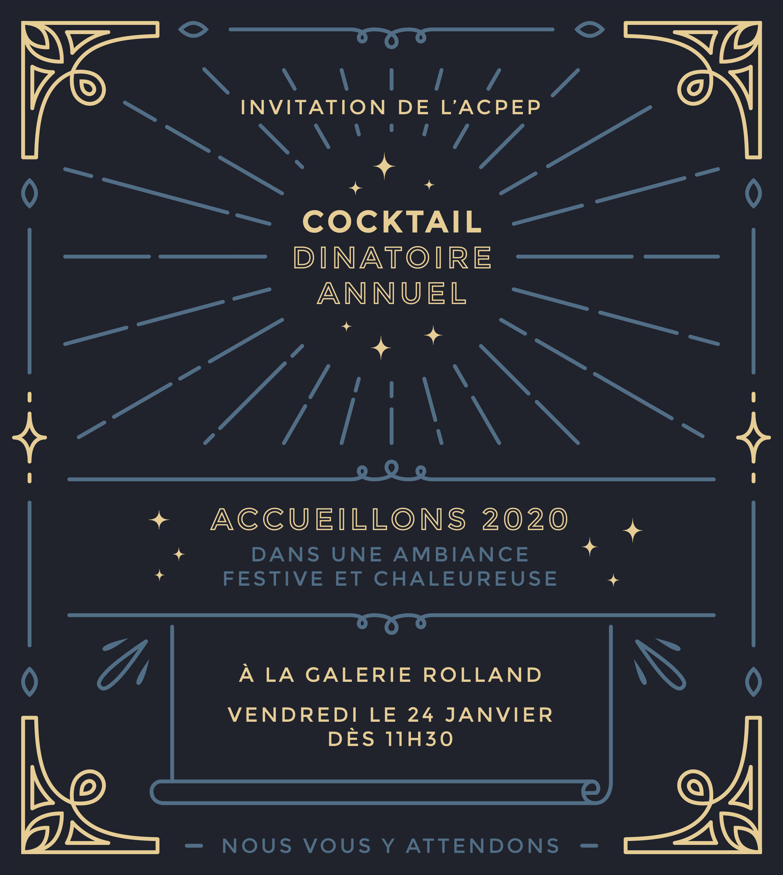 Il nous fait plaisir de vous inviter à notre traditionnel cocktail du nouvel an afin de célébrer le début de cette nouvelle année dans la bonne humeur et surtout en bonne compagnie !
